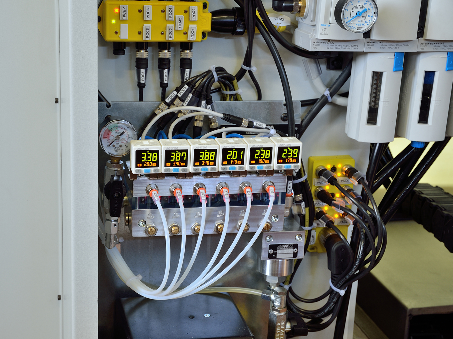 Costruito su base Pc, si trasforma in controllo numerico grazie alla presenza della scheda Master Link che trova alloggiamento all’interno dell’armadio elettrico e che pilota gli assi al vertice delle lavorazioni di alta velocità.